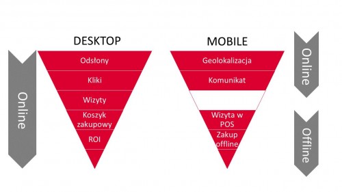 Kluczową różnicą pomiędzy mobile a desktop jest inny sposób wykorzystania ekranów przez konsumenta i marketerów. W przypadku znakomitej większości briefów celem biznesowym kampanii jest zwiększenie sprzedaży. W przypadku użytkowników laptopów zazwyczaj sprowadza się ona do wizyty w e-sklepie, gdzie po zamówieniu, kurier dostarcza nam produkt do domu. W przypadku smartfona – oczywiście bywa podobnie, ale znacznie częściej konsumenci wykorzystują mobilną przeglądarkę do znalezienia lokalizacji najbliższego sklepu czy punktu usługowego. To determinuje rolę kanału mobilnej komunikacji jako „wsparcie sprzedaży w POS”. Bardzo istotną rolę odgrywa tutaj kluczowy wyróżnik smartfona, czyli możliwość precyzyjnej geolokalizacji.