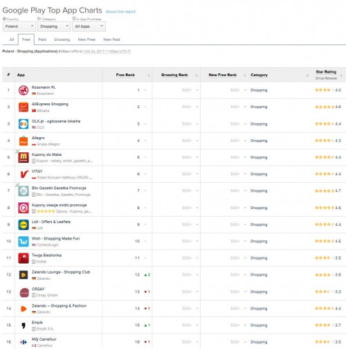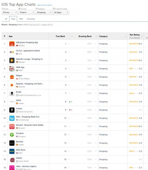 Źródło: Ranking AppAnnie z dn. 24.10.2017