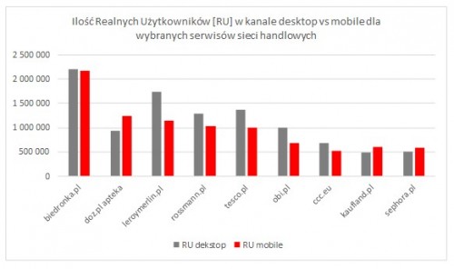 Wyk. 1 Ilość RU w kanale desktop / mobile na stronach internetowych największych sieci handlowych