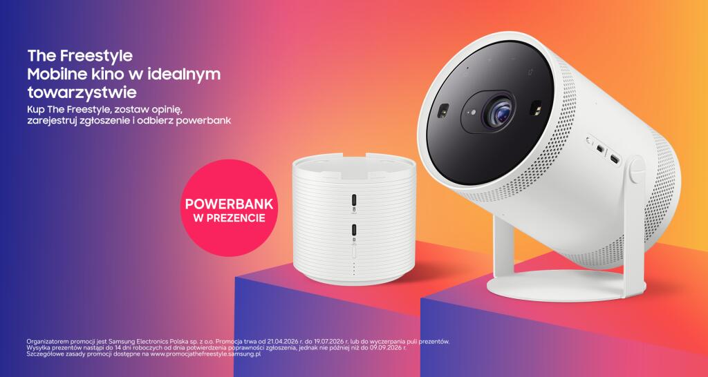 21 kwietnia br. wystartowała wyjątkowa promocja Samsung „The Freestyle – Oglądaj, gdzie chcesz 4”, w ramach której przy zakupie The Freestyle Gen. 2, można otrzymać dedykowany powerbank. Ten kompaktowy projektor pozwala cieszyć się filmami i serialami na dużym ekranie niemal w każdym miejscu, a w ciepłe wiosenne wieczory stanie się idealnym towarzyszem weekendowych wyjazdów, czy kameralnych „seansów pod chmurką”.