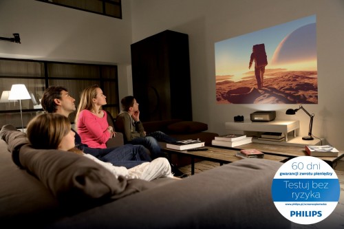 Zakup takiego projektora to wydatek rzędu od 3500 zł do maksymalnie 5000 zł, opierając kalkulację na jednym z urządzeń z rodziny Philips Screeneo. Podobną kwotę wydamy celując w dobrej klasy telewizor o przekątnej od 50 do 55 cali. Zaletą zastosowanej technologii ultrakrótkiego rzutu, jest możliwość wtórnego wykorzystania szafki lub stolika pod telewizor. Nie ponosimy również kosztów remontu związanych z dostosowaniem pokoju pod projektor, takich jak zabudowa czy konieczność podwieszenia urządzenia. Wystarczy zainwestować w dedykowany ekran lub nałożyć na ścianę farbę projekcyjną.