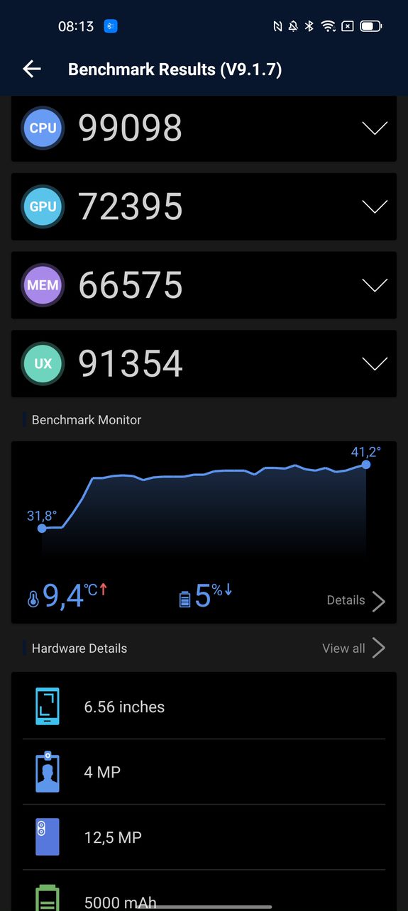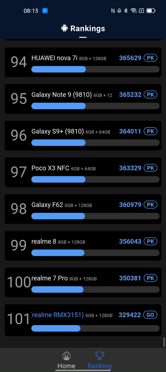 Zacznijmy od tego, że w Polsce jest dostępna wersja 4 GB / 64 GB oraz 4 GB / 128 GB (+ funkcja DRE z możliwością rozszerzenia pamięci RAM o wirtualne 3 GB). Ja z racji tego, że testuję ten model już od jakiegoś czasu mam wersję przedpremierową z 6 GB pamięci RAM i paroma aplikacjami, które nie będą obecne w naszej rodzimej wersji. I na tym kończą się różnice. Troszeczkę ubolewam nad tym, że ta wersja nie pojawi się na naszym rynku, gdyż patrząc z perspektywy 2-3 lat 4 GB RAMu może być trochę za mało. Nie mniej na dzień dzisiejszy wszystko w tym telefonie działa poprawnie i dosyć płynnie. Oczywiście nie jest to błyskawica jak flagowe modele, ale mimo wszystko jak na tą półkę cenową, to nie zauważyłam, aby coś się mocno przycinało, a animacje jakoś nadmiernie zwalniały. Duże znaczenie może tutaj mieć też nowy procesor. Realme 8i otrzymał nowy CPU MediaTek Helio G96. Jest to  rozwojowa wersja procesora G95 (znanego choćby z realme 8). Dzięki temu model z niższej półki może nie tylko liczyć na płynną i wydajną pracę, ale również możliwe stało się zastosowanie w smartfonie ekranu z odświeżaniem 120 Hz. Co więcej G96 współpracuje z szybszą pamięcią wewnętrzną UFS 2.2, którą również znajdziemy w testowanym modelu oraz  Bluetooth 5.2. Obsługiwane są również połączenia VoLTE na obu kartach SIM w smartfonie. To czego nie znajdziemy w realme 8i, to łączność 5G. W perspektywie 2-3 lat może to nie mieć takiego znaczenia, ale w nieco dalszej przyszłości raczej powinno być już standardem.