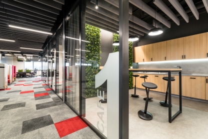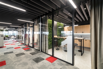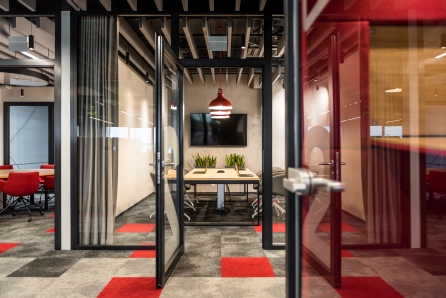 W ramach naszej realizacji wykonaliśmy ścianki wewnętrzne oparte na systemie Aliplast Econoline. Ramy przeszkleń zostały wykonane w grafitowym kolorze RAL7021, który idealnie wpisał się w projekt całego biura. Ze względu na wymagania przeciwpożarowe oraz podwyższonego bezpieczeństwa w dostarczonych przez nas ściankach zastosowano szyby hartowane 6mm – mówi ekspert z firmy Awilux, Rafał Buczek.