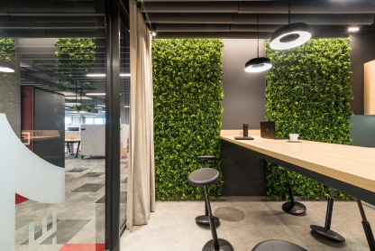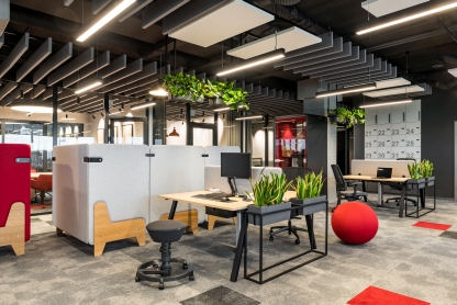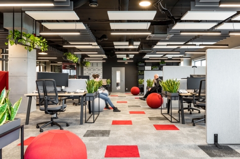 Kluczowymi założeniami projektowymi było stworzenie funkcjonalnych biur spełniających współczesne wymagania dotyczące ergonomii pracy i integracji zespołów tak, by mogły zostać na nowo rozplanowane stanowiska pracy. Projekt zakładał otwarcie przestrzeni małych pomieszczeń biurowych oraz korytarzy w celu stworzenia przestrzeni typu open space. Pozwoliło to nie tylko na lepsze skomunikowanie zespołów, ale także na optyczne powiększenie części biurowej. Postanowiliśmy także zdemontować obniżane sufity, odkrywając ciekawe instalacje oraz malując je łącznie z sufitami na grafitowo. W celu zapewnienia wygody i komfortu pracy, w wybranych strefach zostały zamontowane systemy akustyczne, w formie dekoracyjnych kompozycji, a przy biurkach znalazły się wolnostojące panele akustyczne – mówi architekt Jerzy Milewski, ELM A R C H I T E K C I.