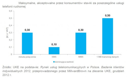 Analizując stawki za poszczególne usługi oferowane przez operatorów należy w pierwszej kolejności przedstawić stawki, jakie były dla konsumentów akceptowalne.