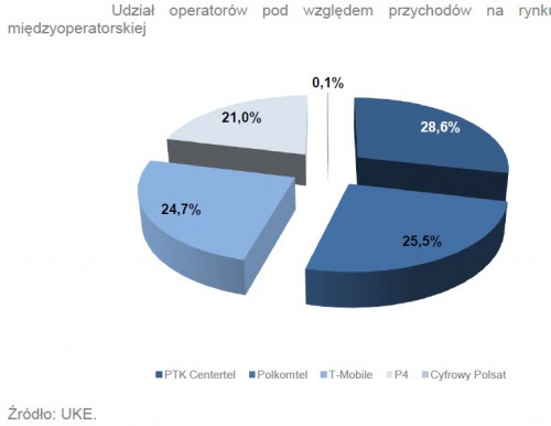 Pod względem przychodów liderem pozostała PTK Centertel uzyskując 28,6% udziałów, i jednocześnie zmniejszając swój udział względem roku poprzedniego o 8,9%. Na drugim miejscu uplasował się Polkomtel z 25,5% udziałem. Największy wzrost – o 15,5% zanotował P4. Wysoki udział P4 w tym zestawieniu spowodowany był asymetrią stawek MTR. Pomimo znacznie mniejszej bazy abonenckiej wyższe stawki pozwoliły uzyskać spółce wysoki przychód z tytułu współpracy międzyoperatorskiej.