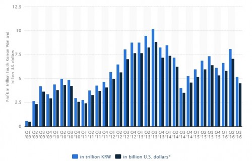W całym minionym roku Samsung odnotował zysk w wysokości 45,4 miliarda dolarów, zaś wpływy z ostatniego kwartału stanowią 7,92 mld USD z całorocznego zysku – to poprawa o prawie 50% w porównaniu z Q4 2015. Okres październik–grudzień 2016 był najlepszym czwartym kwartałem Samsunga w ostatnich trzech latach, dorównując wynikom z bardzo udanych lat 2012 i 2013. Straty spowodowane z niepowodzeniem Note 7 zrekompensował duży popyt na produkowane przez Samsunga ekrany OLED i kości pamięci RAM oraz flash.
