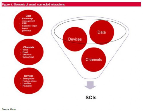 W raporcie „The Future of Customer Service in a Mobile World: Smart, Connected Interactions”, opublikowanym w lipcu zeszłego roku, niezależna firma analityczna Ovum definiuje potencjał technologii mobilnych jako możliwość nawiązania z klientem nowego rodzaju komunikacji – „inteligentnej, powiązanej interakcji”. W inteligentnej interakcji firma jest świadoma kontekstu klienta, a wiedza o takich aspektach kontaktu jak: urządzenie, z którego korzysta klient, jego lokalizacja, produkty i formularze, które przeglądał przed nawiązaniem połączenia z konsultantem, zwiększają efektywność pracy contact center.