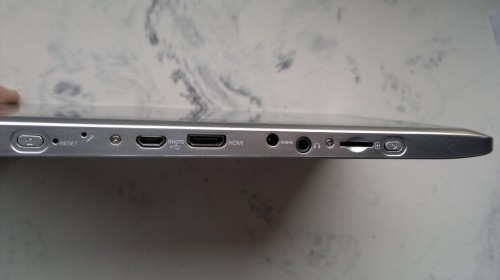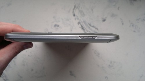 Z prawej strony urządzenia znajdują się przyciski regulacji poziomu głosu, natomiast u dołu urządzenia zostały umieszczone pozostałe gniazda i przyciski; przycisk włączania, przycisk Home, reset, mikrofon, gniazda microUSB oraz HDMI, gniazdo zasilania i słuchawek oraz gniazdo na kartę pamięci microSD. Takie umiejscowienie w jednym miejscu to plus, gdyż obsługa przy podpiętych kablach nie sprawia problemów, lecz jest również minus, lecz o tym nieco później.