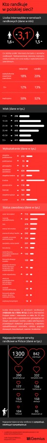 Liczba internautów w serwisach randkowych zwiększyła się o blisko 60 tys. (2 proc. internautów). Przybyło kobiet i internautów w wieku do 24 roku życia, a także osób z wykształceniem gimnazjalnym lub niższym, zawodowym i średnim, a także osób fizycznych, prowadzących działalność gospodarczą, urzędników, wykwalifikowanych robotników, rolników, gospodyń domowych, bezrobotnych, uczniów i studentów.