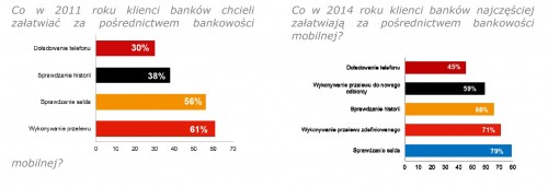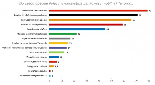 Z kolei 66,5 proc. badanych sprawdza w telefonie historię operacji na koncie. W tym wypadkuwzrost w ciągu trzech lat jest ogromny, gdyż w 2011 roku było to tylko 32 proc.