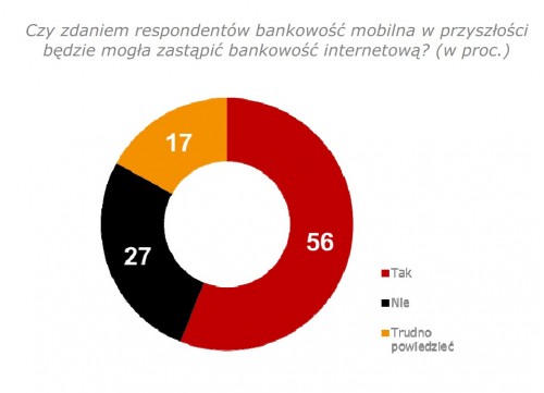 W 2011 roku aż 53 proc. badanych twierdziło, że nie widzi potrzeby korzystania z bankowości mobilnej w ogóle i zupełnie wystarczające są dla nich inne kanały dostępu do usług bankowych. Tymczasem obecnie ponad połowa badanych (55 proc.) uważa wręcz, że w przyszłości bankowość mobilna zastąpi internetową, a więc będzie najczęściej wykorzystywanym zdalnym kanałem realizacji operacji bankowych. Dla porównania, trzy lata temu podobny pogląd wyrażało 48 proc. respondentów.