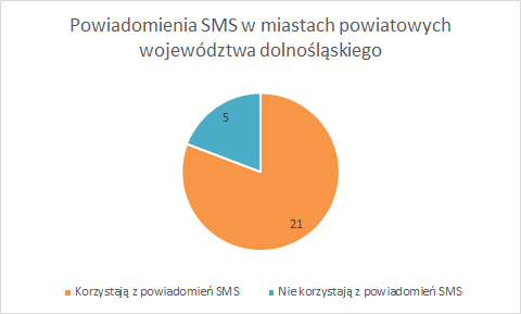 W przypadku województwa śląskiego z powiadomień SMS korzysta 16 miast powiatowych – Chorzów, Jaworzno, Katowice, Kłobuck, Lubliniec, Mikołów, Pszczyna, Racibórz, Rybnik, Sonsowiec, Tychy, Będzin oraz Żywiec. Krótkich wiadomości tekstowych z urzędu nie otrzymają mieszkańcy pozostałych 17 miast powiatowych na Śląsku. Wśród analizowanych województw zdecydowanie największą popularnością powiadomienia SMS cieszą się na Dolnym Śląsku, gdzie 21 spośród 26 miast powiatowych zdecydowało się na taką formę komunikacji z mieszkańcami. Wśród miast, które nie korzystają z powiadomień SMS znajduje się Wrocław, Trzebnica, Głogów, Środa Śląska i Dzierżoniów.