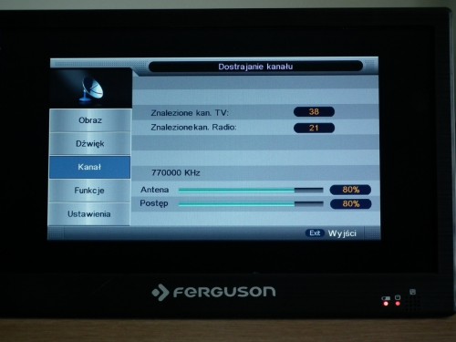 Ferguson PHT-1008 ma wbudowany akumulator, który według producenta pozwala na oglądanie telewizji lub filmów do 2 godzin bez dodatkowego zasilania. I tu mam dobrą wiadomość dla potencjalnych użytkowników, nasze testy wykazały, że pełne naładowanie akumulatora pozwala przekroczyć ten czas nawet o 15-20 minut.