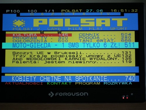 Telewizor obsługuje telegazetę – uruchamiana jest tylko przy pomocy pilota.