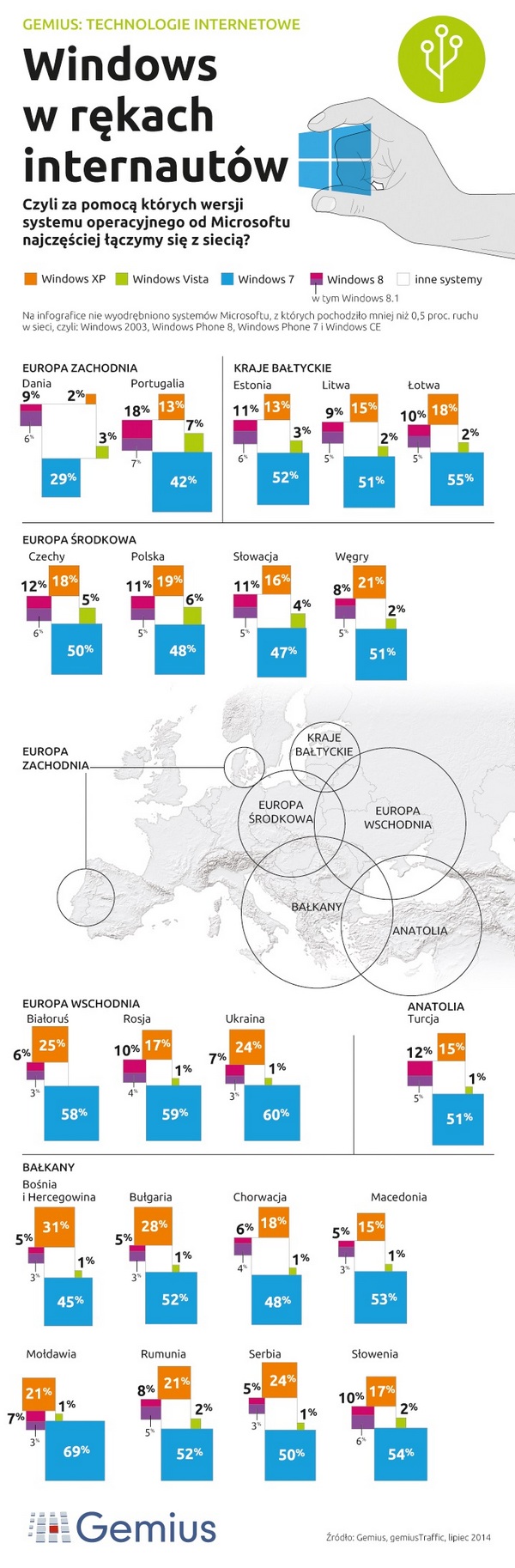 Odpowiedzi na to pytanie dostarczają dane firmy Gemius (infografika) oraz komentarz przygotowany przez Akademię Leona Koźmińskiego. Zdaniem Macieja Madzińskiego, eksperta ds. innowacji i technologii z tej uczelni, zakończenie wsparcia Microsoftu dla Windowsa XP nie przełożyło się na istotny spadek popularności tego systemu w Polsce. Widać natomiast wyraźnie, że rynek mobilny to nadal ogromne wyzwanie dla firmy z Redmond.