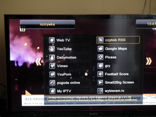 Po podłączeniu do Internetu zyskujemy wiele ciekawych funkcjonalności. Możemy odtwarzać video ze znanego serwisu Youtube czy konkurencyjnego Dailymotion, również w jakości 1080P (aby płynnie odtwarzać potrzebne łącze o przepustowości co najmniej 5Mbps). Możemy również wyświetlić prognozę pogody online w sposób graficzny.
