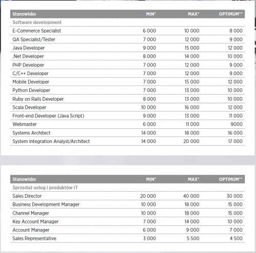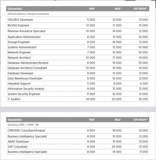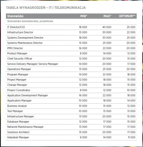 TABELA WYNAGRODZEŃ – IT I TELEKOMUNIKACJA