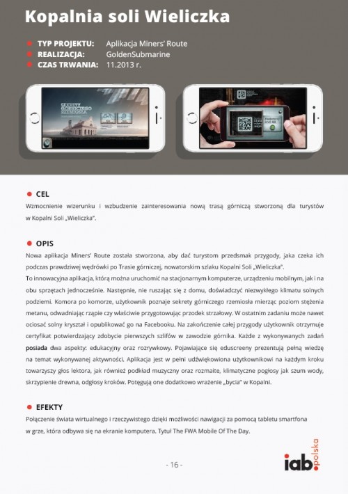 „Kampanie opisywane w każdym kolejnym zbiorze są coraz lepsze. Nie musimy już wspomagać się przykładami z rynków zagranicznych. I co ważniejsze – w pełni możemy z nimi konkurować! Ten zbiór pokazuje również, jak chętnie marketerzy korzystają z formatów rich mediowych. I jak bardzo liczy się dla nich interakcja i zaangażowanie użytkownika. – wyjaśniają Agnieszka Ferenc z Wirtualnej Polski i Natalia Malec z Coigdzie.pl, członkinie grupy roboczej mobile odpowiedzialne za projekt.