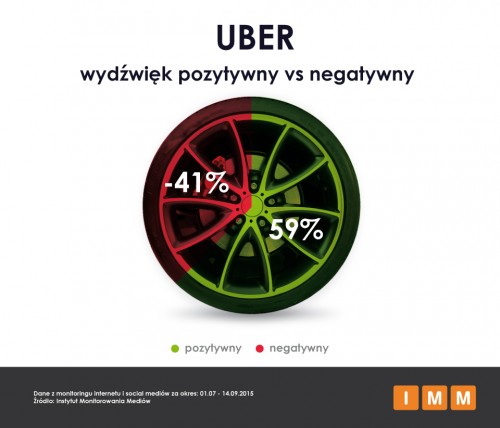 Zgodnie z danymi IMM z automatycznego monitoringu internetu – ami, na temat UBER-a w internecie i social mediach w okresie od 1.07 do 14.09.2015 pojawiło się prawie 2, 5 tys. wzmianek, z czego najwięcej na Facebooku – niemal 1000 informacji. Najczęściej w kontekście debaty w Komisji Europejskiej nad legalnością Ubera oraz rosnącej popularności aplikacji na świecie, która, zgodnie z rankingiem Business Insider, zaprezentowanym artykule z portalu wp.pl, została ogłoszona najdroższym startupem na świecie, wartym 51 mld dolarów, wyprzedzając takich gigantów jak chińskie Xiaomi czy amerykańskie Airbnb. Zaledwie w ciągu ostatnich siedmiu miesięcy wartość firmy Garretta Campy i Travisa Kalanicka wzrosła o 10 mld dolarów.