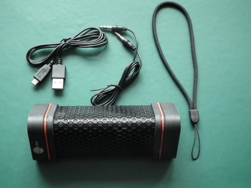 Pod solidną klapką, chroniącą sprzęt przed warunkami atmosferycznymi, producent umieścił wejście AUX, gniazdo microUSB do ładowania i suwak, który pozwala włączyć/wyłączyć głośnik. Stereofoniczne wejście sygnału audio AUX 3.5, pozwala nam cieszyć się muzyką z dowolnego sprzętu typu komputer, iPod, telefon komórkowy, inne.