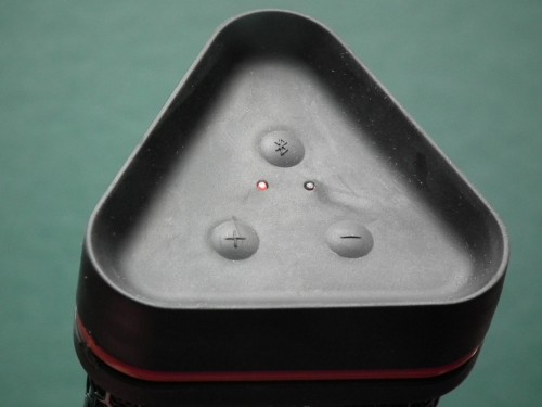 Po bokach znajdziemy gniazda oraz przyciski służące do sterowania. Głośnik sterowany jest za pomocą przycisków umieszczonych na lewym boku obudowy. Można nimi regulować głośność i pauzować odtwarzanie. Ponadto znajdziemy tutaj dwie diody LED (niebieska i czerwona) informujące o pracy urządzenia.