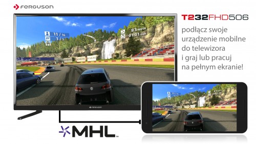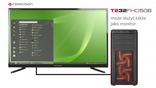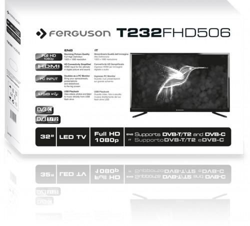 Ferguson T232FHD506 wyróżnia się jakością obrazu i odwzorowaniem kolorów. Panel LCD wykonano w technologii podświetlenia LED a oferuje on bardzo dobry kontrast 5000:1 i szerokie kąty widzenia 178/178 stopni. Duży wybór gniazd dostępowych pozwala podłączyć do telewizora niemal każde urządzenie zewnętrzne ze smartfonami, tabletami (także wspierającymi technologię MHL), konsolami do gier i komputerami włącznie. Szczególnie w przypadku komputerów Ferguson T232FHD506 doskonale sprawdza się w roli monitora.