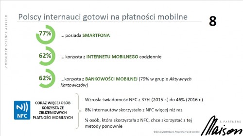 Firma MasterCard opublikowała wyniki „Badania otwartości polskich konsumentów na innowacyjne metody płatności”, przeprowadzonego we współpracy z domem badawczym Maison&Partners. Zgodnie z nimi polscy internauci są otwarci na płatności mobilne i entuzjastycznie reagują na możliwości oferowane przez zbliżeniowe płatności telefonem.