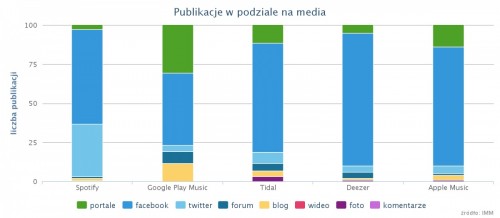 IMM zbadał internetową dyskusję w pierwszym tygodniu sierpnia. Niemal 80% polskojęzycznych komentarzy o serwisach streamingowych dotyczyło marki Spotify. Apple, pionier cyfrowej dystrybucji muzyki, z usługą Google Play – niespełna 0,5%.
