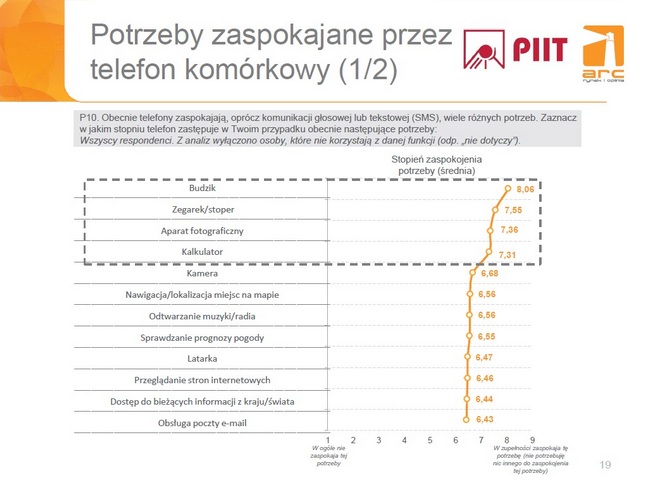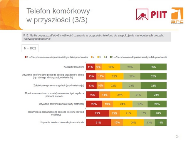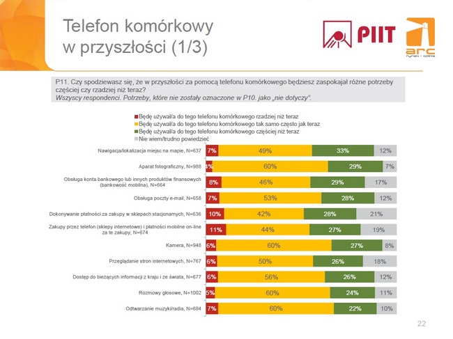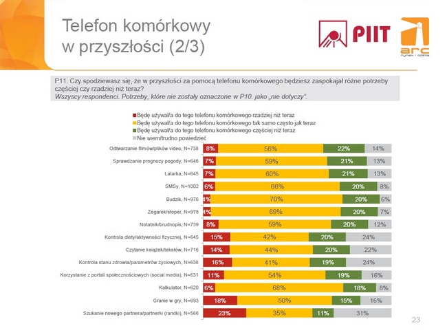 - Większość badanych z entuzjazmem odnosi się do używania telefonów do jeszcze mało dostępnych obecnie funkcji, np. kontaktu z lekarzem, obsługi urządzeń w domu czy e-administracji. Potencjał do zaspokajania przez telefon kolejnych potrzeb życia codziennego, które być może teraz trudno sobie jeszcze wyobrazić, jest więc bardzo duży – w końcu jeszcze 20 lat temu mało kto spodziewał się, że będziemy nosić w kieszeni urządzenia niewiele ustępujące komputerom.