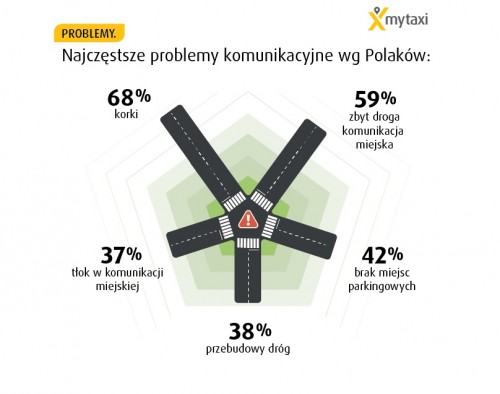 57% mieszkańców dużych aglomeracji za najszybszy środek transportu uważa własny samochód. Tylko 19% za najszybszą uznało komunikację miejską, a 15% taksówki, podczas gdy oba te środki transportu mogą skutecznie omijać korki dzięki możliwości przejazdów buspasami, a ich kierowcy nie muszą tracić czasu na wyszukiwanie miejsca parkingowego. Ta dysproporcja ukazuje niską świadomość Polaków w kwestii efektywnego poruszania się po mieście. To właśnie zbyt duże korki oraz brak miejsc parkingowych wskazywane są jako największe utrudnienia komunikacyjne.
