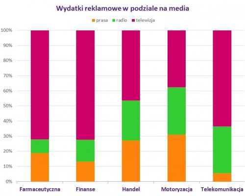 Wszystkie branże zainwestowały najwięcej środków w reklamę telewizyjną, w branżach farmaceutycznej i finansowej było to ponad 30% budżetu reklamowego. W branży motoryzacyjnej budżet lokowany był proporcjonalnie we wszystkich mediach.