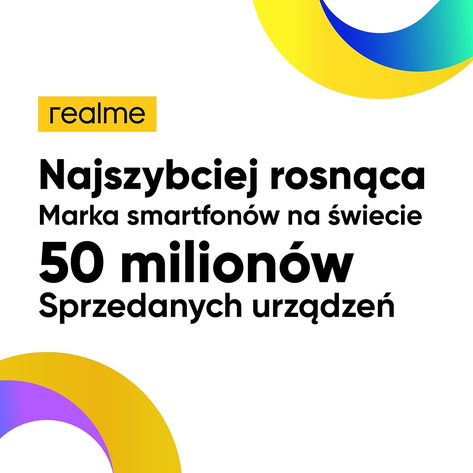 - Historyczny rekord. Osiągnięcie progu 50 mln sprzedanych smartfonów zajęło realme zaledwie dziewięć kwartałów – marka istnieje od maja 2018 roku;