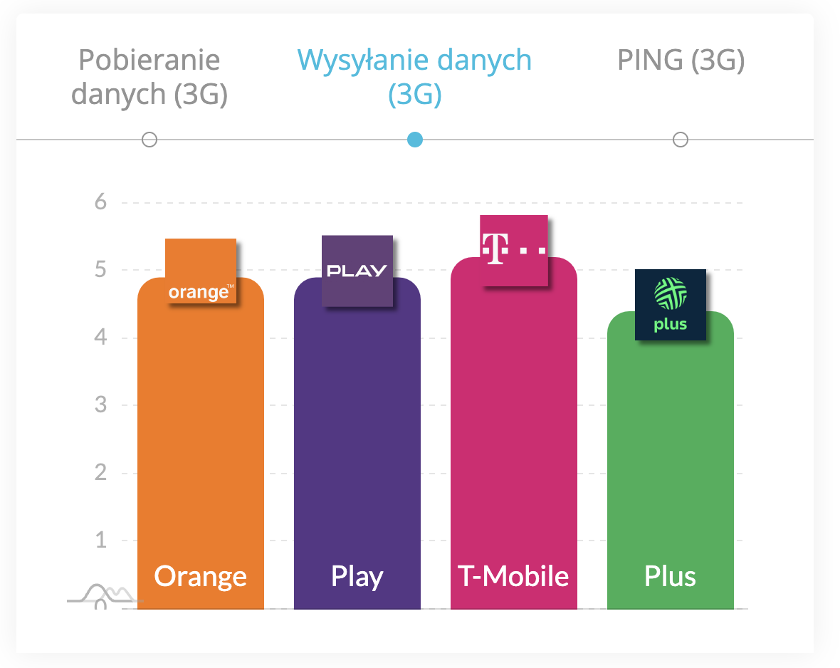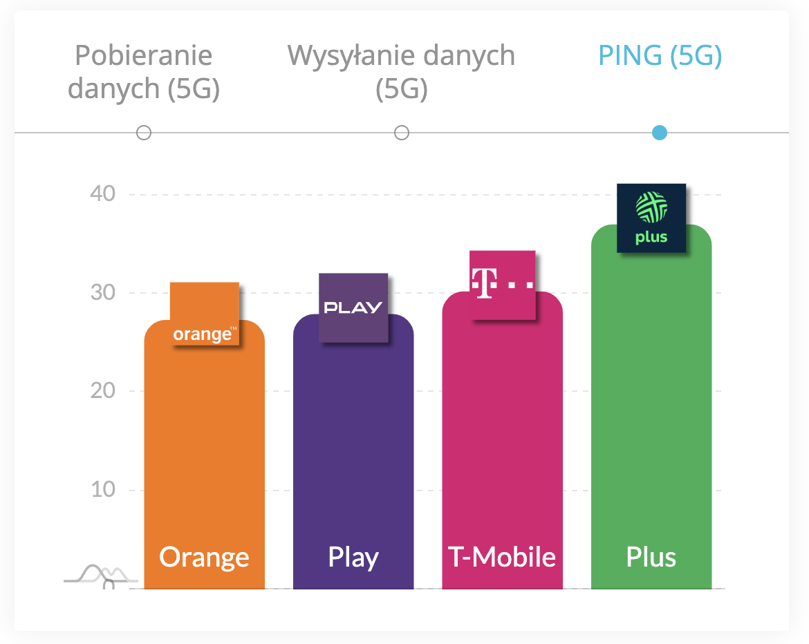 Biorąc pod uwagę opóźnienie, to najlepszym wynikiem ping może pochwalić się Play (29,9 ms). Mało jednak brakowało, by miejsce tego operatora zajęło Orange (30,1 ms). Brąz wpadł do kolekcji T-Mobile (33,6 ms), a smakiem obejść się musiał Plus (39,2 ms).