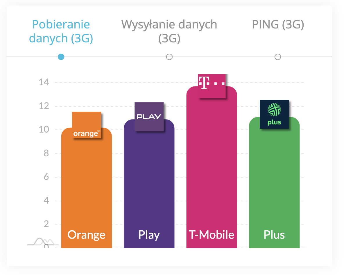 Drugi stopień podium zajęło Orange (59,7 Mb/s), trzeci był Play (56,5 Mb/s). Zestawienie zamknął T-Mobile z wynikiem 49 Mb/s.