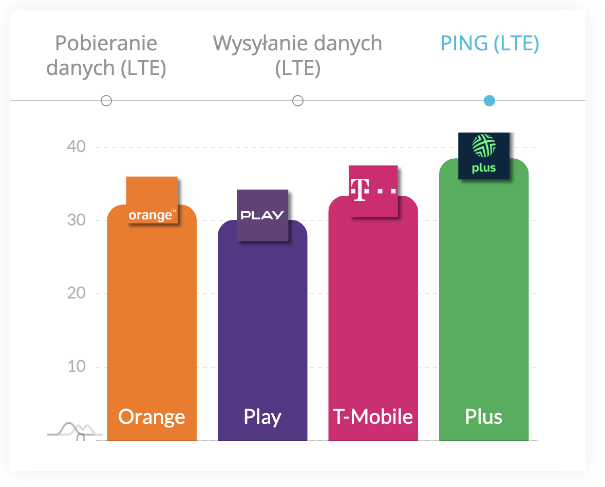 W kategorii ping, która jest kluczowa dla aplikacji wymagających szybkiej reakcji, takich jak gry online i połączenia wideo, Play osiągnął najniższy wynik z 28,2 ms. T-Mobile, z wynikiem 28,9 ms, znalazł się tuż za Play, co pokazuje, że obaj operatorzy są w stanie dostarczyć swoim klientom szybkie i reaktywne połączenia. Orange z wynikiem 31,9 ms i Plus z wynikiem 35,5 ms zamykają stawkę, ale obaj operatorzy nadal oferują akceptowalne czasy ping dla większości zastosowań.
