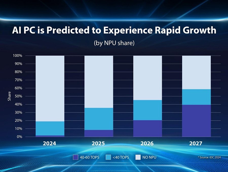 Laptopy AI wkraczają do gry. Zostały one zaprojektowane do obsługi złożonych zadań AI lokalnie i na urządzeniu użytkownika, eliminując potrzebę ciągłych połączeń z chmurą. IDC, Canalys, Gartner, Digitimes i inne branżowe instytuty badawcze przewidują oszałamiający 30% udział w rynku laptopów AI do 2025 roku, co jest wyraźnym wskazaniem, że przyszłość komputerów jest inteligentna.