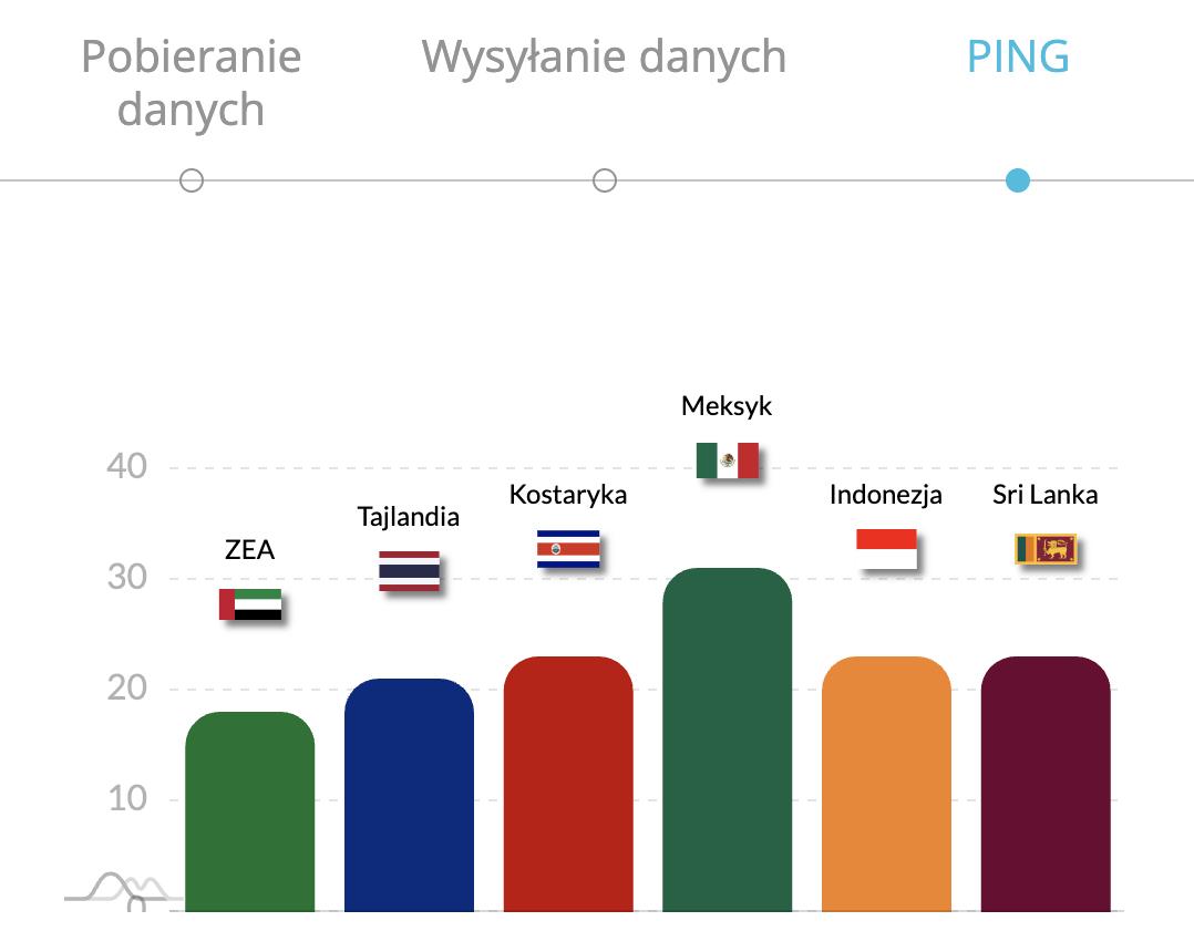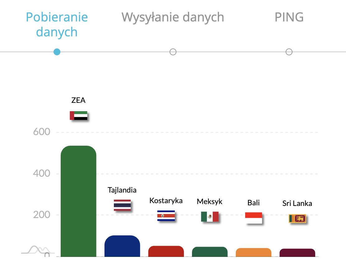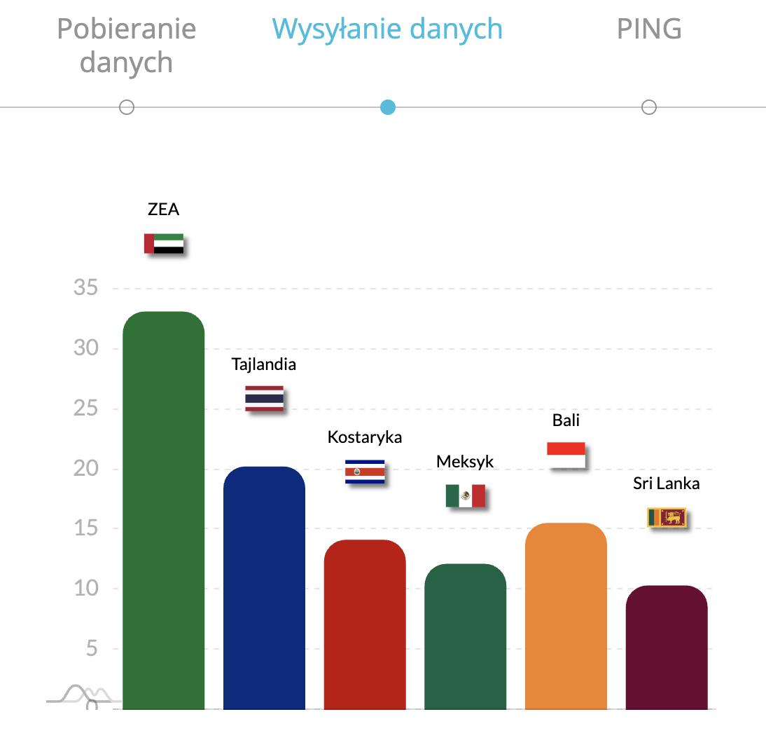 Pod względem szybkości i jakości internetu mobilnego bezkonkurencyjne są Zjednoczone Emiraty Arabskie. Wysokie miejsce zajmuje również Tajlandia, a w dalszej kolejności Kostaryka, Meksyk i Bali, które zapewniają przyzwoity komfort online. Sri Lanka sprawdzi się, jeśli nie oczekujesz superszybkiej sieci, a priorytetem jest kontakt z naturą