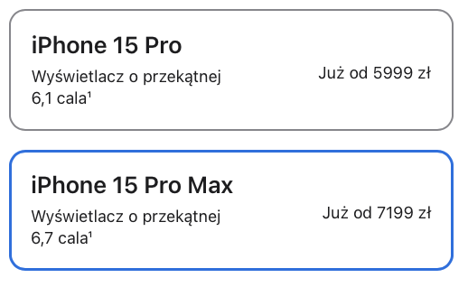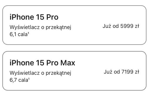Ceny iPhone 15 Pro i Pro Max