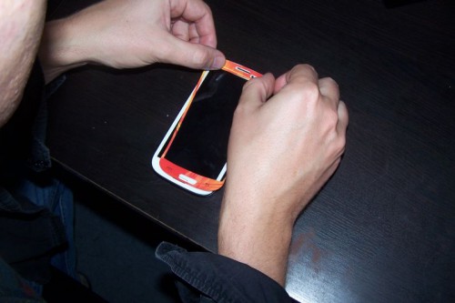 My do testów otrzymaliśmy kilka wersji nakładanych na różne urządzenia: skiny na iPada3, Samsunga Galaxy S3 oraz Iphone’a 4. W każdym z tych urządzeń proces nakładania folii jest podobny.
