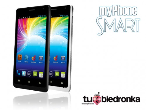 Polski producent smartfonów myPhone, wspólnie z siecią sprzedaży detalicznej Biedronka przygotował nową niezwykle atrakcyjną propozycję. Zestaw myPhone SMART – bo o nim mowa – to nowoczesny smartfon działający w oparciu o najbardziej popularny system Android oraz karta startowa „TuBiedronka”, dzięki której użytkownik może otrzymać darmowy roczny dostęp do Internetu. Już w najbliższy poniedziałek pojawi się w sklepach sieci Biedronka na terenie całego kraju. Kosztować będzie jedynie 349 złotych.