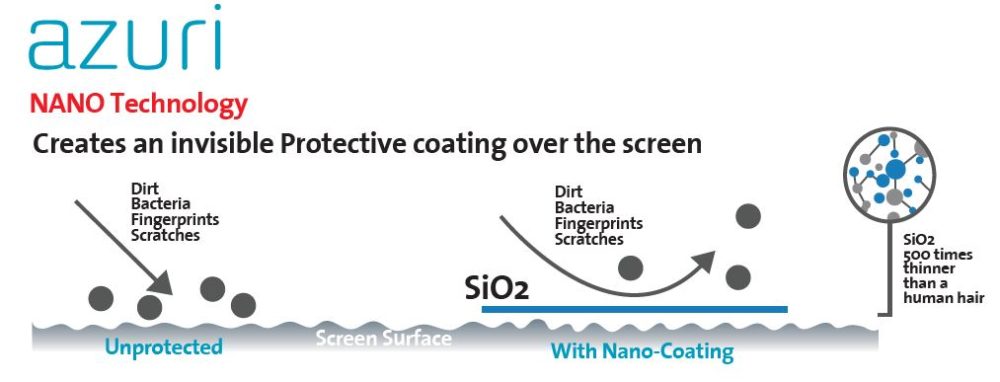 Na polskim rynku pojawił się nowy produkt, służący do ochrony ekranów urządzeń mobilnych przed zarysowaniami i zabrudzeniami – Azuri Rinox Armor belgijskiej firmy A& C Systems NV-SA. Nie jest to klasyczne szkło czy folia naklejana na ekran, lecz rozwiązanie w postaci zawierającego ditlenek krzemu (czyli krzemionkę) płynu, który po naniesieniu na ekran błyskawicznie twardnieje tworząc tzw. nano-osłonę i skutecznie zabezpiecza jego powierzchnię przed zarysowaniami, zabrudzenia, śladami odcisków palców itp.