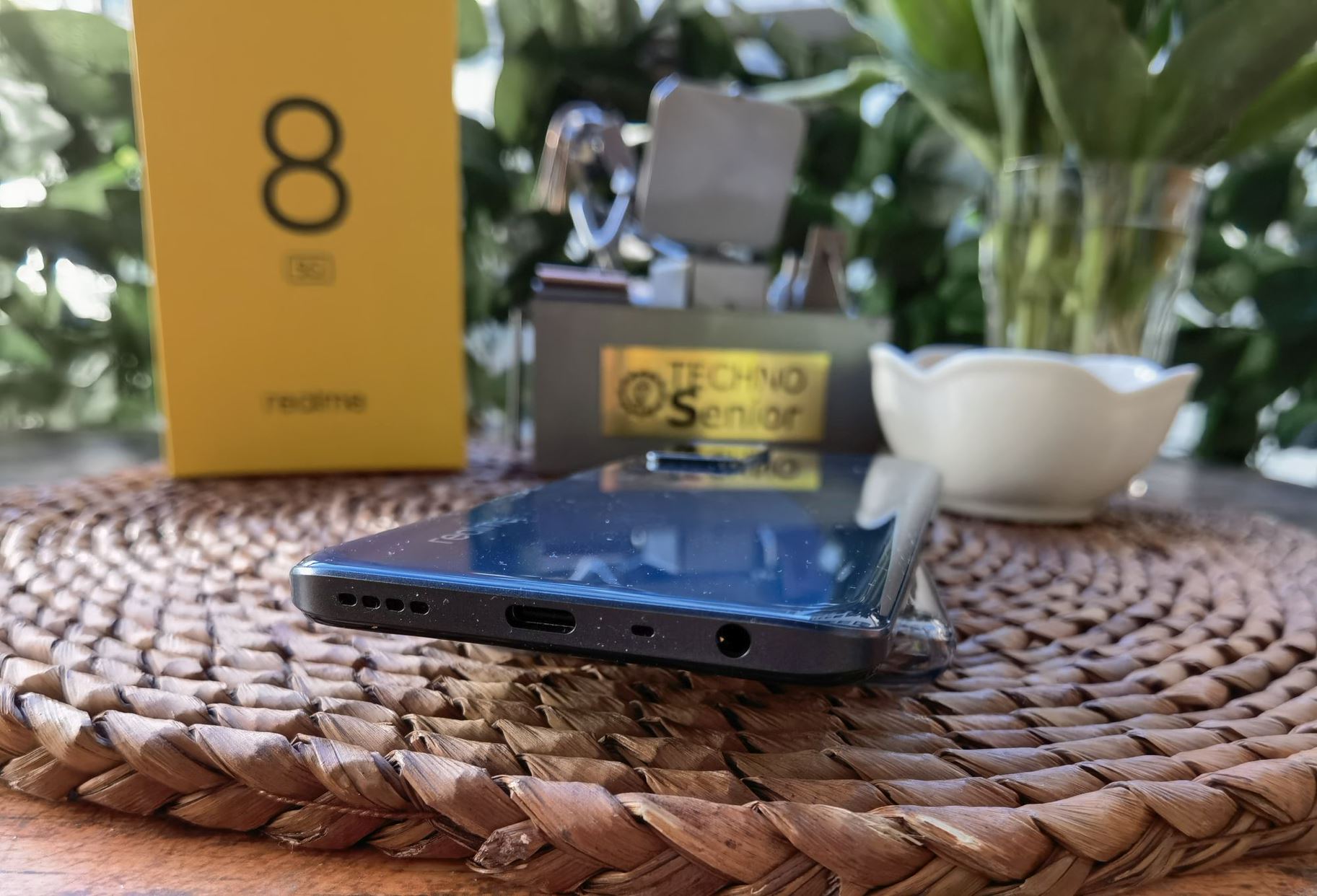 W realme 8 5G nie zabrakło bocznego boku czytnika linii papilarnych, który został zintegrowany z przyciskiem power. Smartfon oferuje także gniazdo słuchawkowe jack 3,5 mm oraz moduł NFC. Można więc podpiąć do niego kartę płatniczą i korzystać z tak popularnych w Polsce płatności zbliżeniowych.