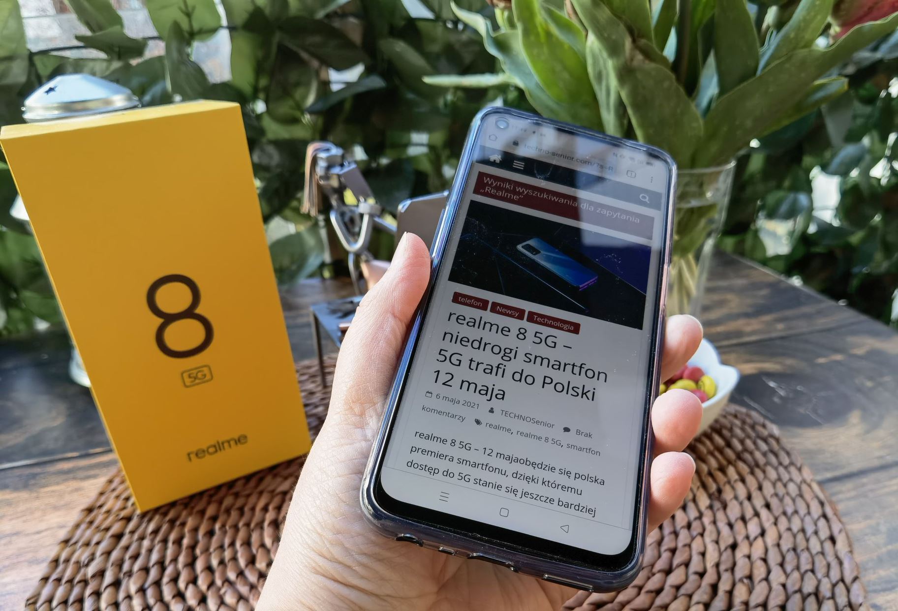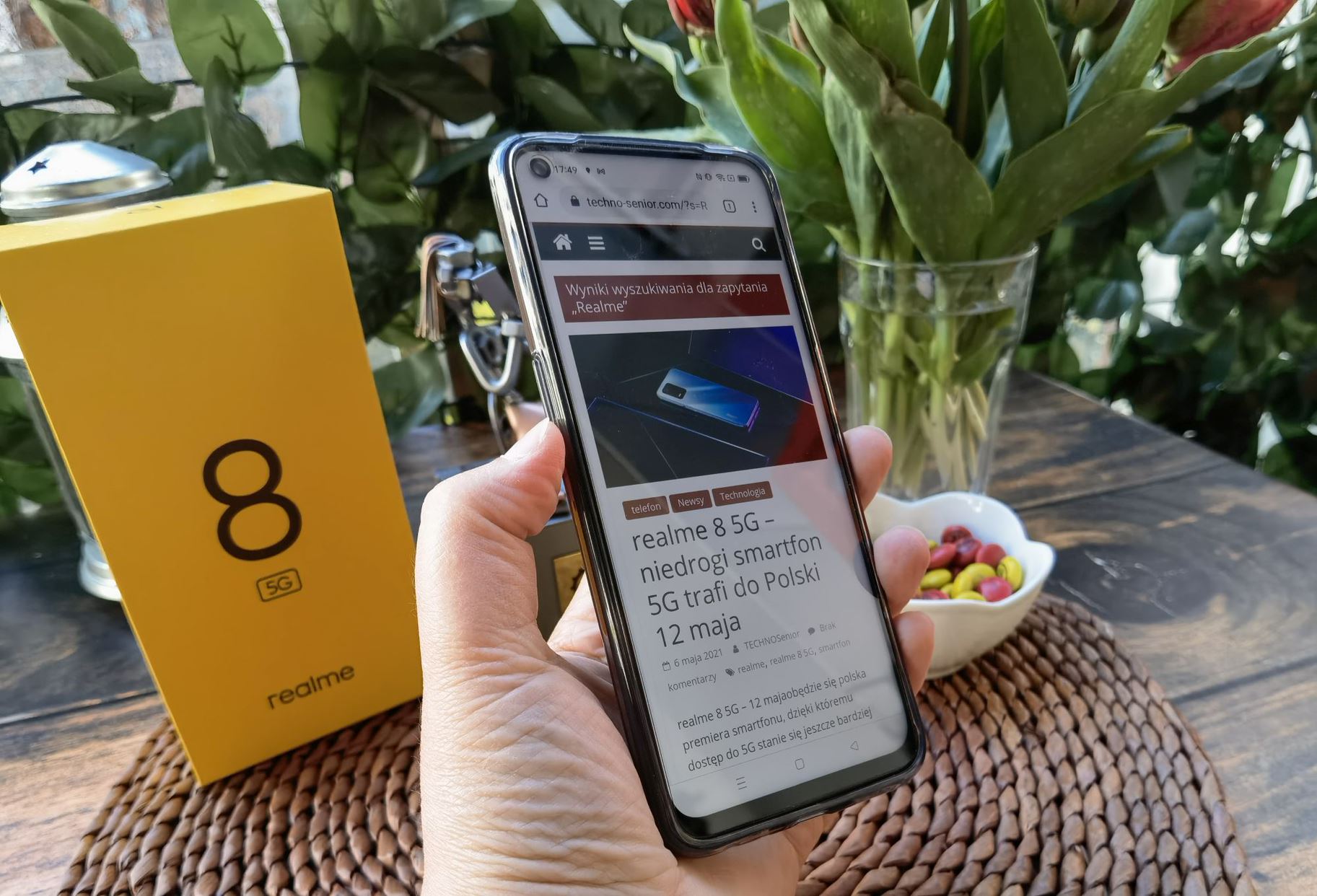 Realme 8 5G, to bardzo przyzwoity niedrogi smartfon. Jego główną zaletą jest obsługa sieci 5G w cenie ok. 1000 zł. Nie jest on może najtańszy na rynku (tańsza jest np. Motorola Moto g50), ale w tej półce cenowej to i tak jeszcze rzadkość, co sprawia, że dla osób, którym zależy na obsłudze sieci 5G w przystępnej cenie będzie on świetnym wyborem. Do tego płynne działanie, spora ilość pamięci w wersji 6 GB/128 GB z możliwością rozszerzenia o kartę pamięci do 1 TB czy wyświetlacz z odświeżaniem 90 Hz (może nie AMOLED, ale i tak nie ma powodu do większych narzekań). Mamy również NFC czy wyjście mini Jack, a jedyny największy minus, to dosyć skromny zestaw aparatów (chociaż zdjęcia z niego wbrew pozorom zaskakują i to na plus). Można było jednak pokusić się chociaż o szeroki kąt czy tele zamiast zbędnego obiektywu macro – 2 Mpx.