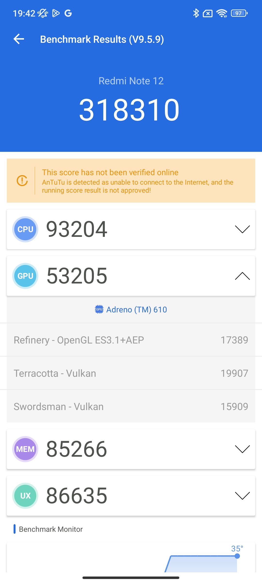 Niewielka zmiana względem poprzednika (Redmi Note 11) zadziała się również w środku. Testowany model otrzymał procesor Qualcomm® Snapdragon™ 685 (8 × Kryo™, taktowanie do 2.8 GHz), 4 GB pamięci RAM LPDDR4X oraz 64 / 128 GB pamięci UFS 2.2 na pliki. AnTuTu pokazało wynik na poziomie 310 tys. punktów. Zatem nie jest to demon prędkości ani w liczbach ani w rzeczywistości. Potrafi się delikatnie przyciąć czy dłużej pomyśleć podczas otwierania jakieś aplikacji. Nie mniej nie jest to niczym odbiegającym od innych modeli w tej klasie cenowej. Smartfon dobrze radził sobie z podstawowymi zadaniami – media społecznościowe, mniej wymagające gry, przeglądanie stron WWW, rozmowy telefoniczne, komunikacja SMS i komunikatorami czy pstrykanie fot. Owszem zdarzały mu się drobne zwolnienia, o których już wspomniałam wcześniej, ale przy 4 GB pamięci RAM to nie jest niczym dziwnym już. Co ciekawe w opcjach znajdziemy pozycję, którą możemy rozszerzyć pamięć RAM o dodatkowe 1 GB pamięci wirtualnej.