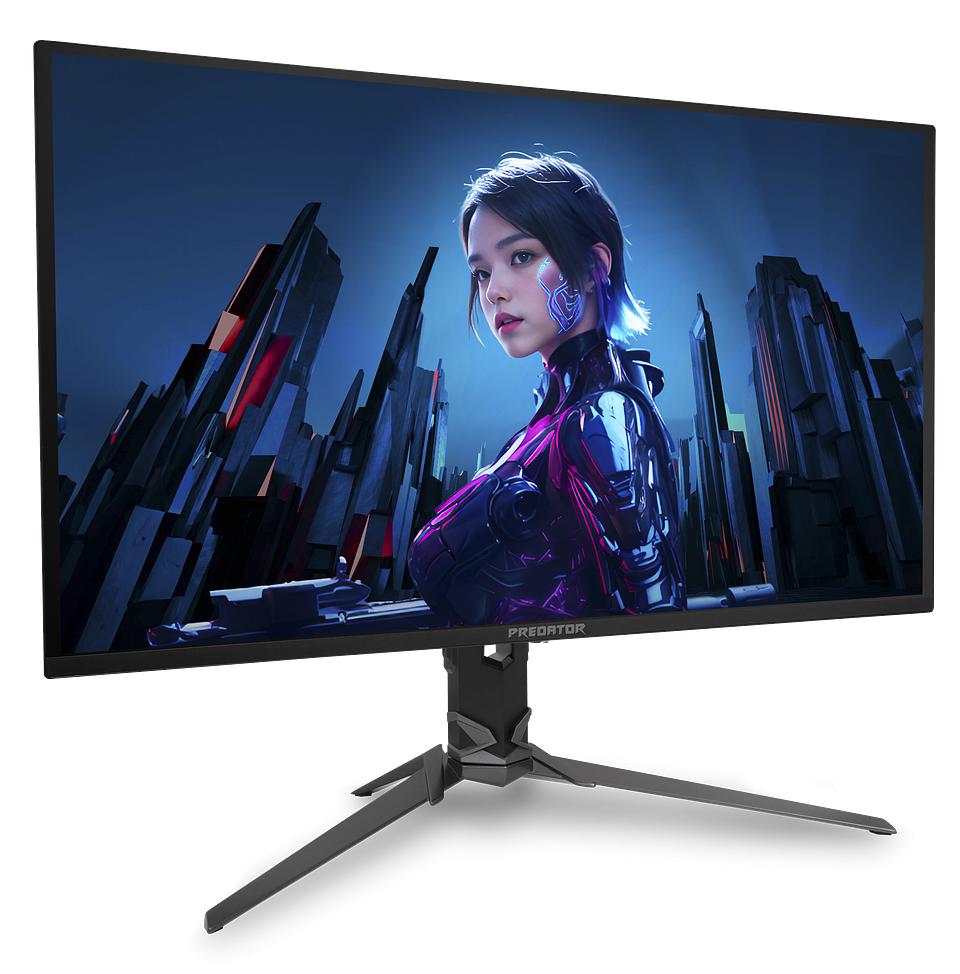 Predator X32 X2 wyposażony jest w 31,5-calowy panel UHD (3840×2160) QD-OLED o proporcjach 16:9 i częstotliwości odświeżania 240 Hz. Model ten został zaprojektowany z myślą o graczach poszukujących wyjątkowej ostrości obrazu oraz większej immersji. Monitor oferuje współczynnik kontrastu 1 500 000:1, co w połączeniu z technologią QD-OLED zapewnia głęboką czerń i żywe, nasycone barwy, a jasność na poziomie 1000 nitów gwarantuje doskonałą jakość obrazu w trybie HDR.