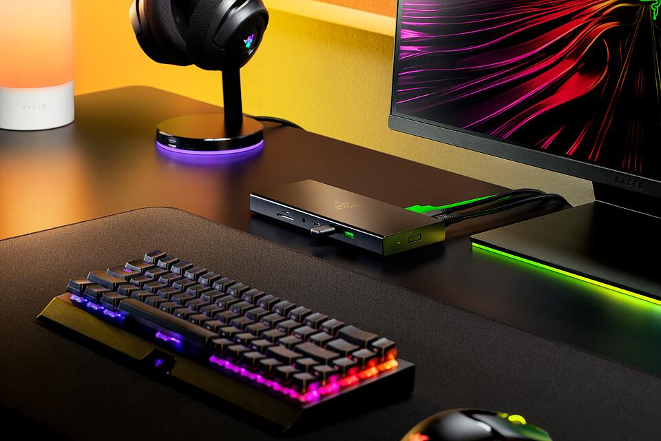 - Razer USB4 Dock: Wyposażony w najnowszy standard USB4, stacja dokująca oferuje prędkość transferu do 40 Gb/s i obsługuje konfiguracje z dwoma monitorami, zwiększając łączność i produktywność zarówno dla graczy, jak i profesjonalistów.