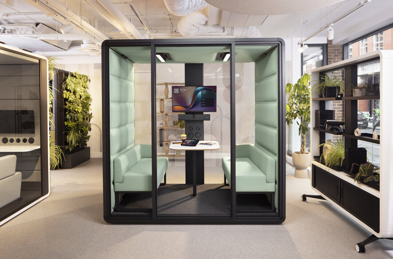 - Intelligent Meeting Space umożliwia użytkownikom personalizację i ustawianie granic wirtualnej przestrzeni konferencyjnej – idealne rozwiązanie dla biur na planie otwartym lub pomieszczeń ze szklanymi ścianami.