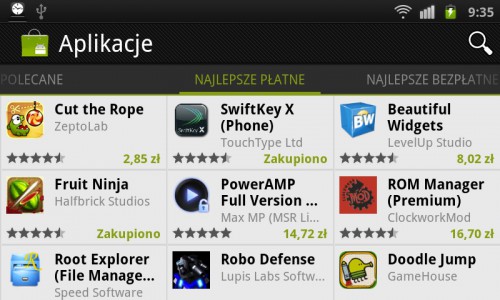 W porównaniu do wersji Android Market 2.x nowa odsłona jest w pełni spolszczona (oprócz opisów niektórych aplikacji).