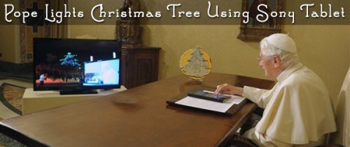 Oficjalny komunikat stolicy apostolskiej: „Pope Benedict XVI touched a Sony tablet Wednesday, lighting „the biggest Christmas tree in the world.”
